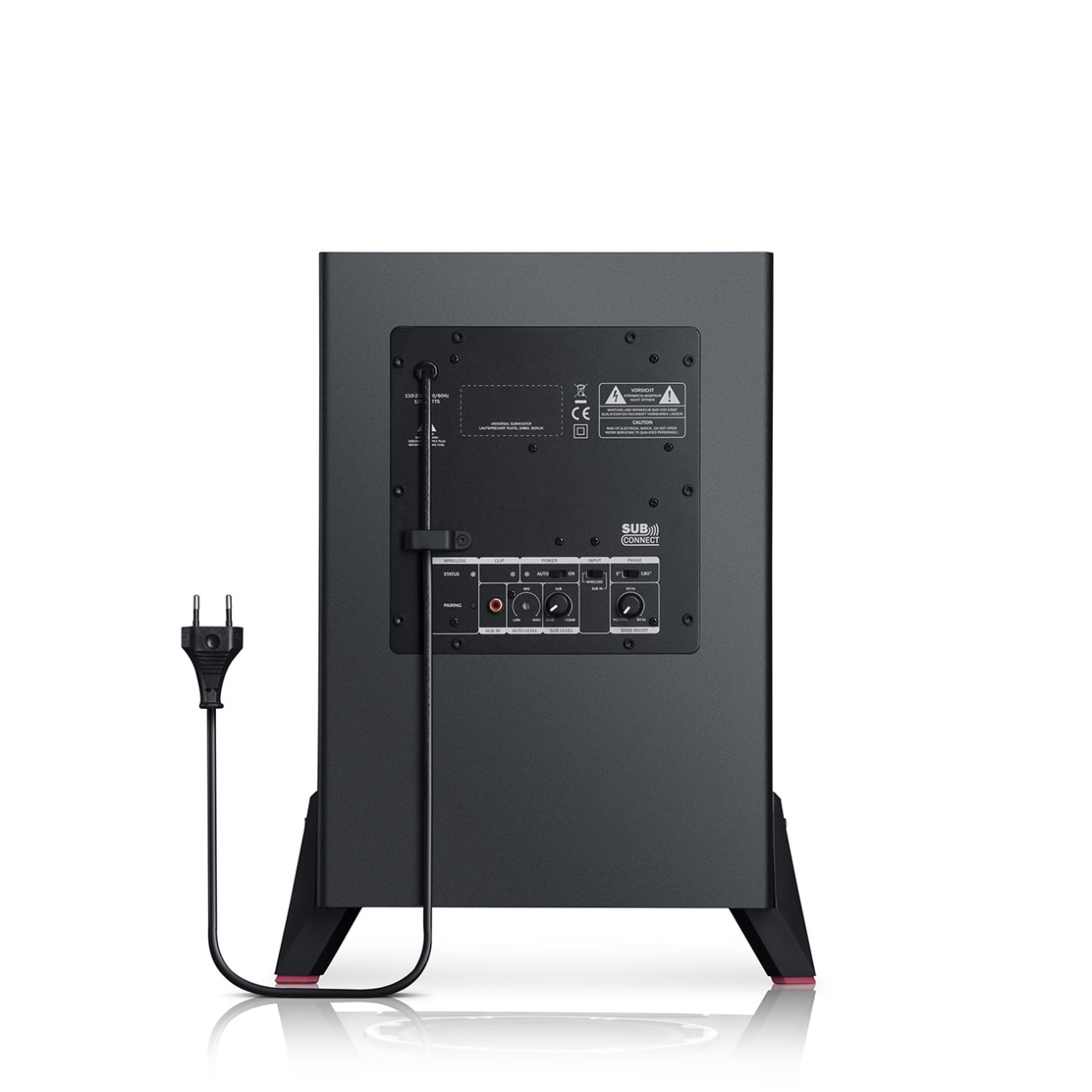 Uma saída HDMI CEC para fácil controle via controle remoto da TV, ARC para conexão com um único cabo à TV, entrada HDMI, filtro passa-alta 4K, opção de conexão para subwoofer