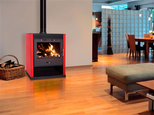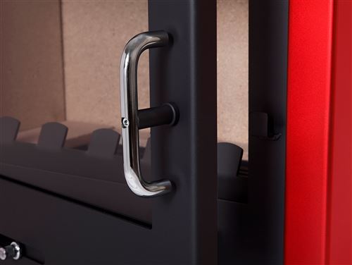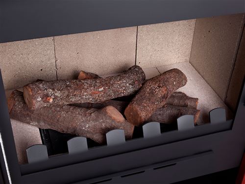 Materiais: Construção em chapa de aço – Grelha para cinzas em ferro fundido – Vidro resistente ao calor – Câmara de combustão em tijolos refratários
