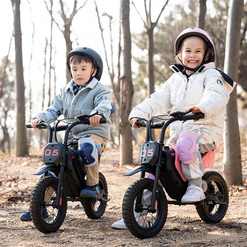 Motocicleta elétrica Evercross para crianças de 3 a 12 anos, 300 W, 25 km/h, 3 níveis de velocidade, pneus rosa de 12″.