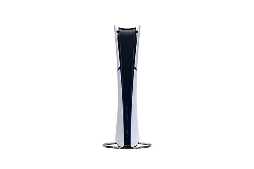 Console digital Sony PS5 Slim Edition nas cores branca e preta.