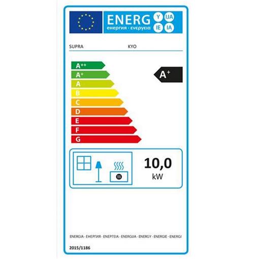 Fogão a lenha Supra Kyo preto de 10 kW em ferro fundido – O fogão a lenha Supra Kyo é fabricado inteiramente em ferro fundido.