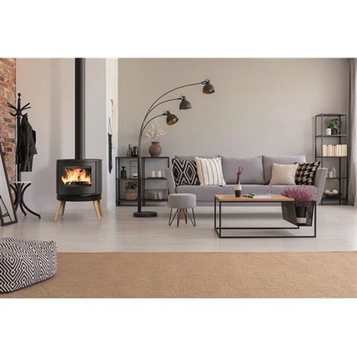 Fogão a lenha Supra Kyo de 10 kW feito de ferro fundido preto
